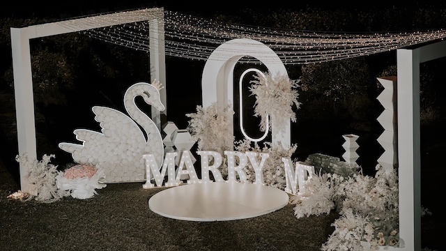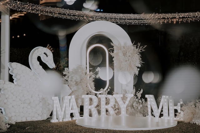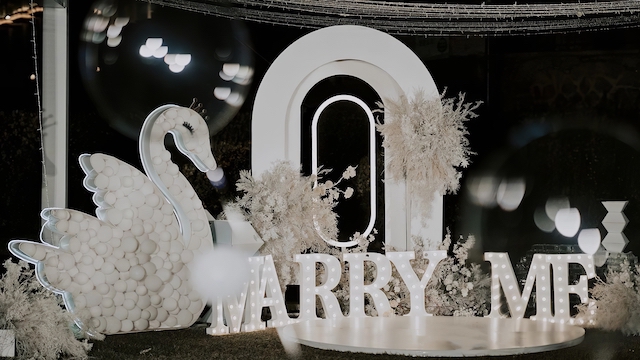 天鵝湖浪漫佈置 I 求婚氣球驚喜 I 求婚花藝佈置Imarry me字燈
