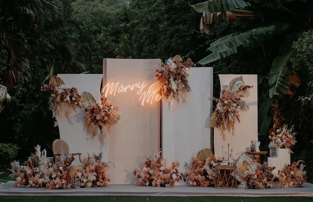 客製化的求婚花藝設計佈置、網美最愛的浪漫求婚告白背板,